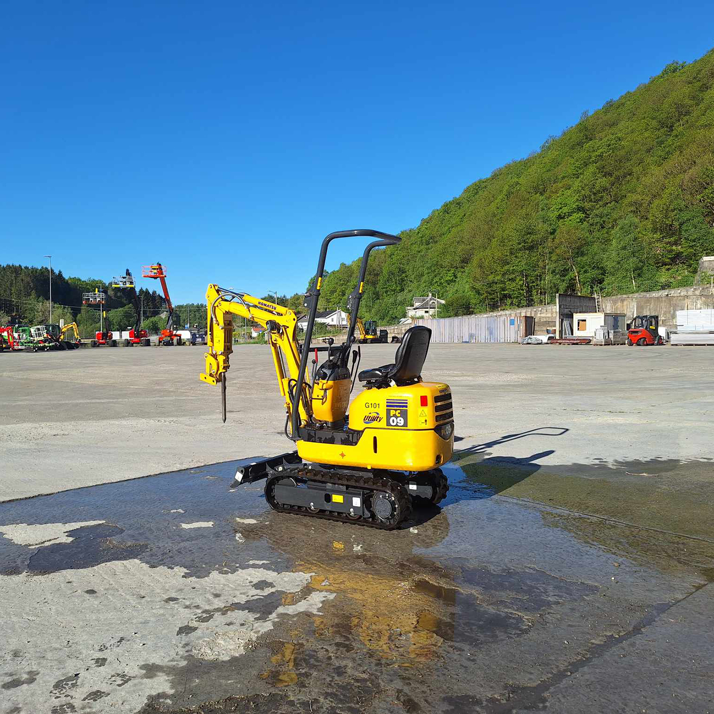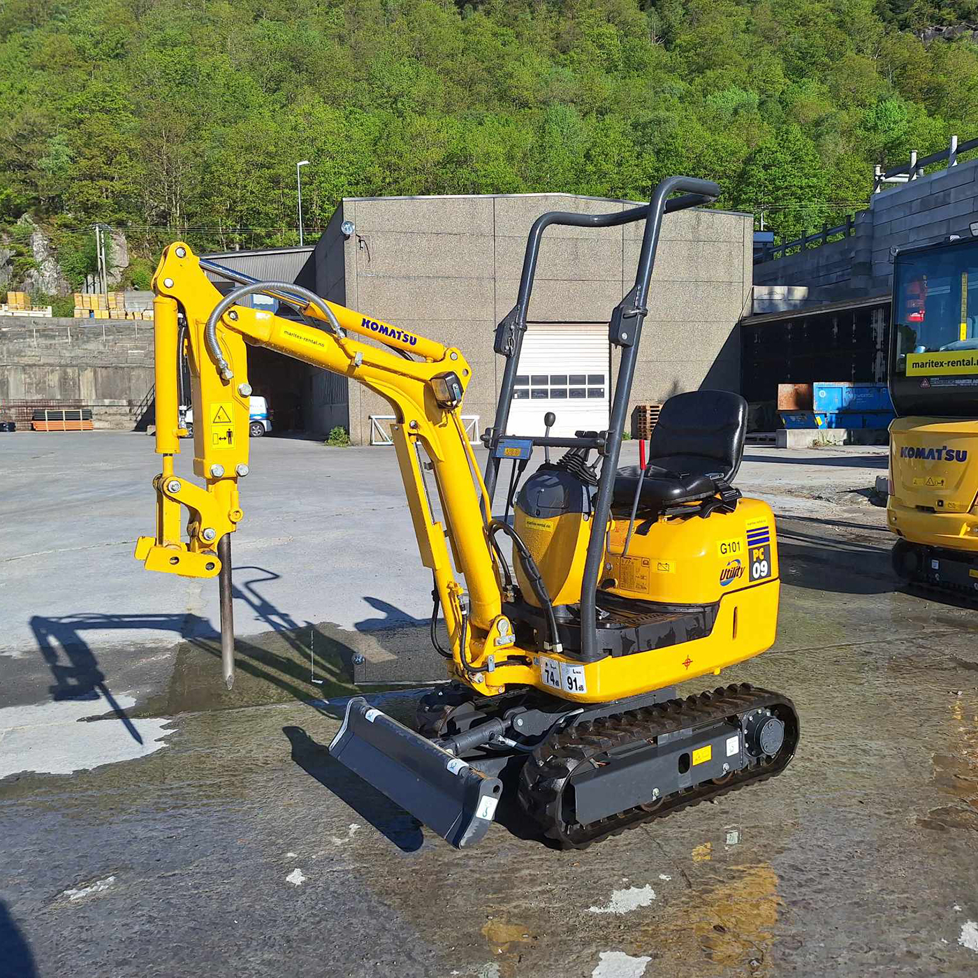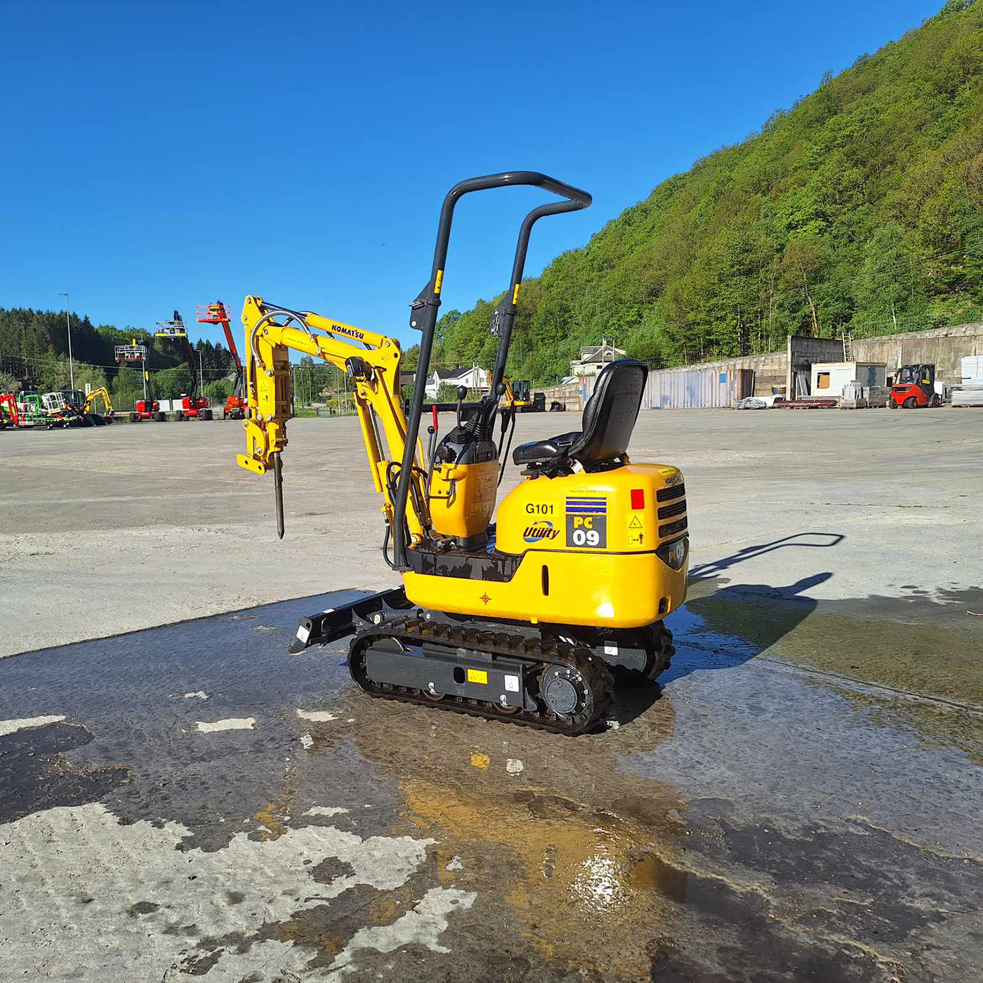 Komatsu PC09 980KG Denne får du med og uten hydraulisk meisel Utskyvbart understell Smal nok til og komme seg inn gjennom dører