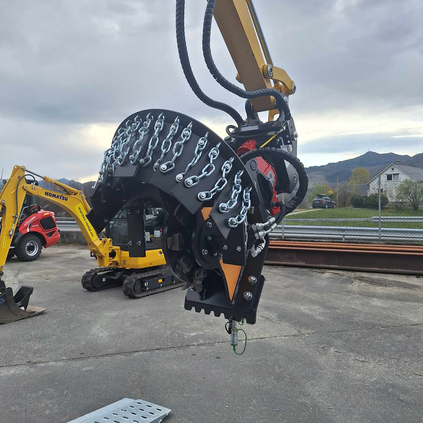 Denne kan du få med stubbe fres til (hydraulisk på maskinen)