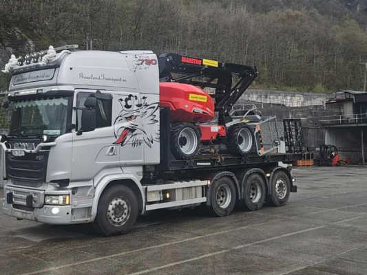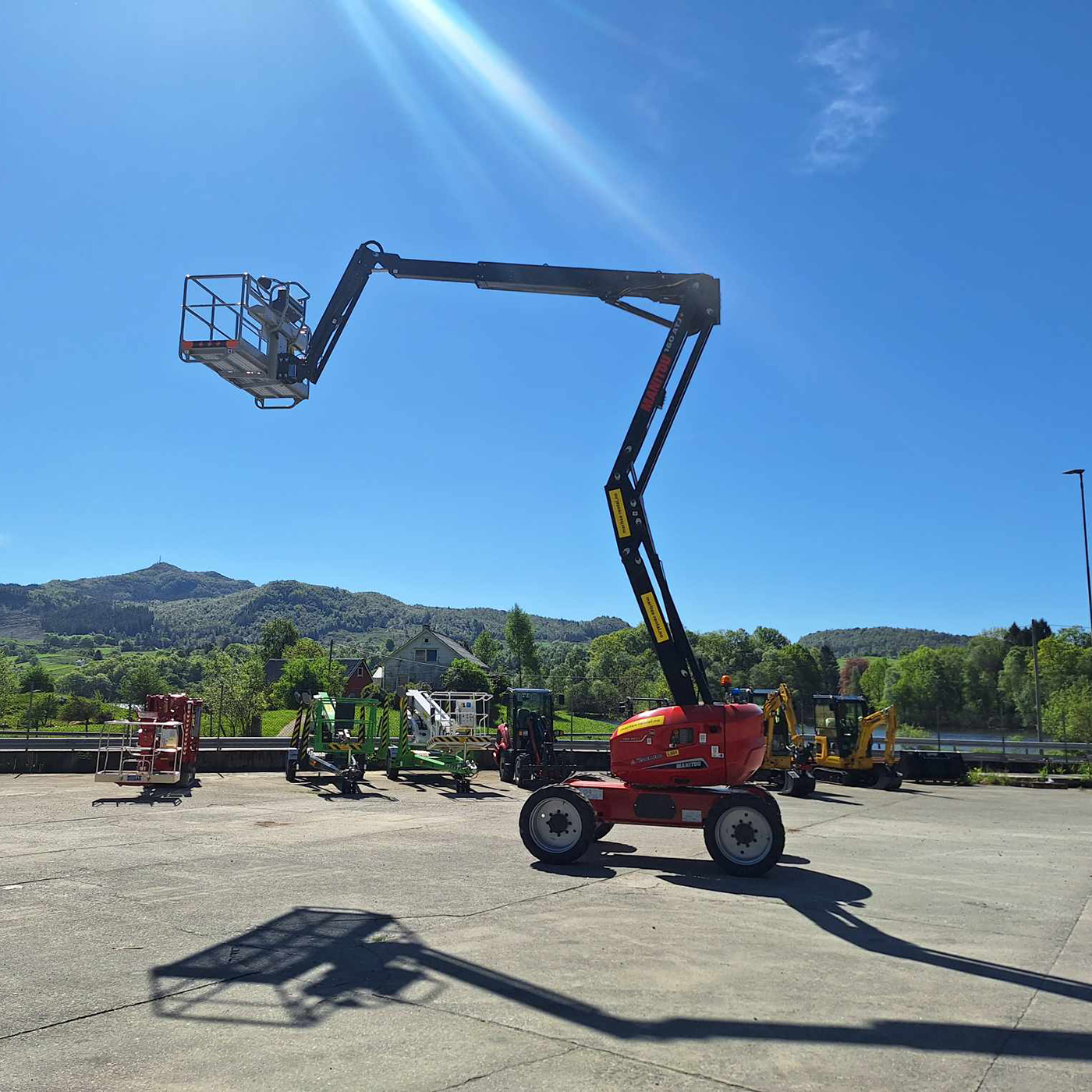 Kjøreegenskaper: 4-hjulsdrift og tre styringsmoduser for optimal manøvrerbarhet på utfordrende terreng. Maskinen kan håndtere stigninger på opptil 40 % og har svingaksel for bedre stabilitet.