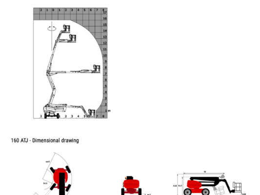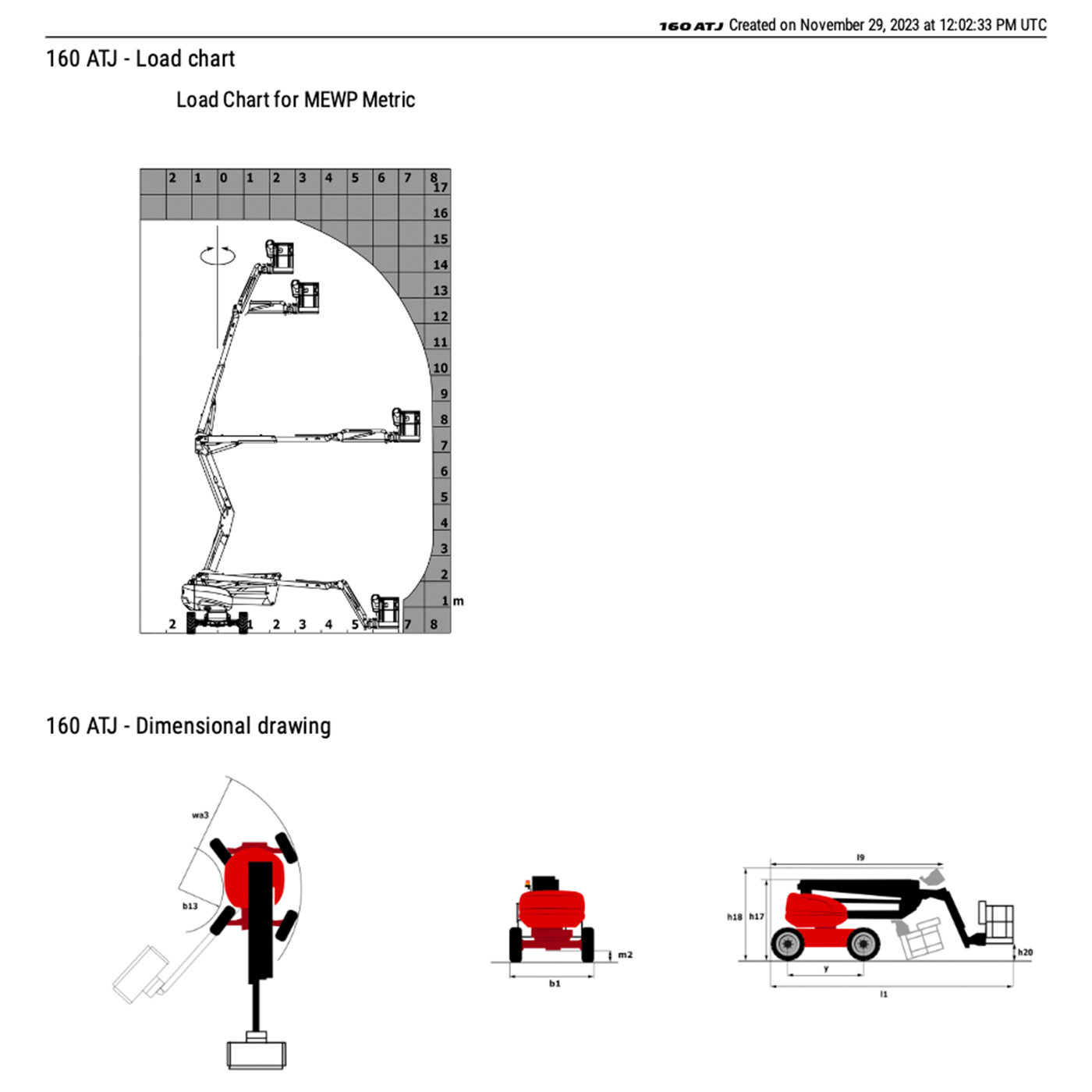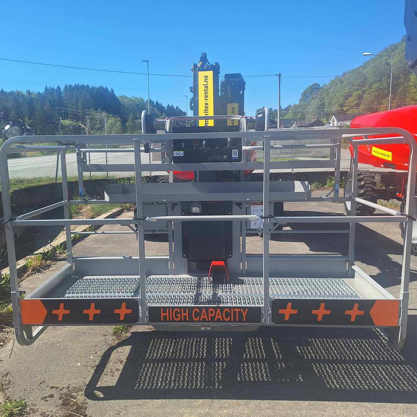Sikkerhetsfunksjoner: Inkluderer «dead man’s pedal», sikkerhetsventiler, kontrollpanel både i kurven og på bakken, vektkontroll, helningsvinkeldetektor, negativ bremsing, elektrisk nødpumpe og punkteringssikre dekk.