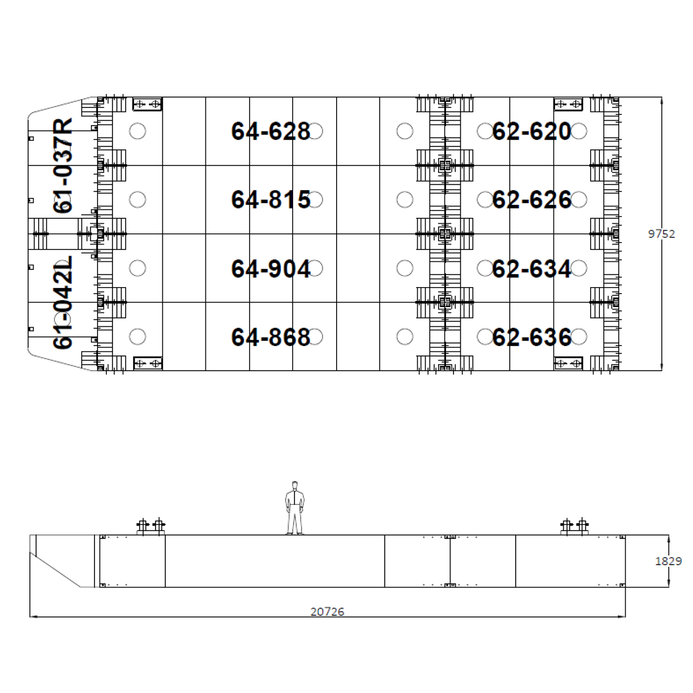 Dimensjoner: 20,73 x 9,75 x 1,83m