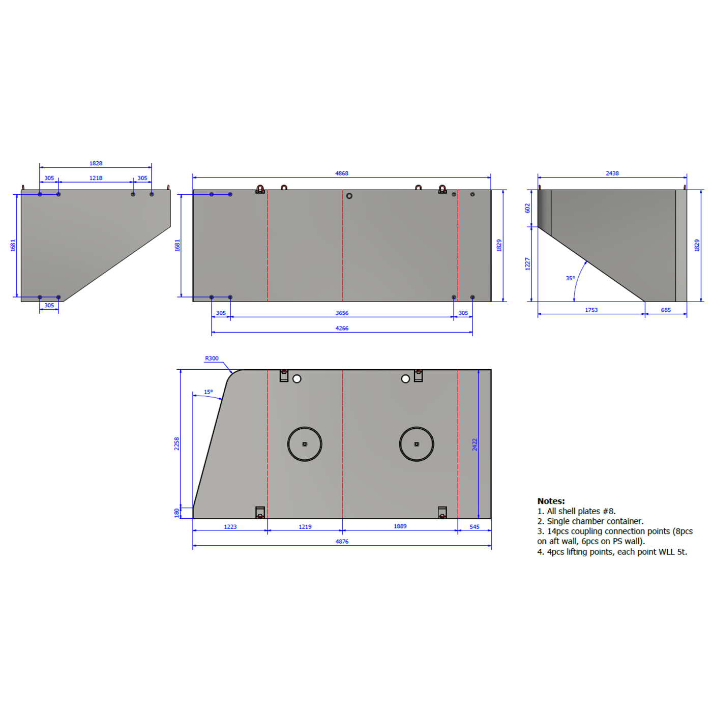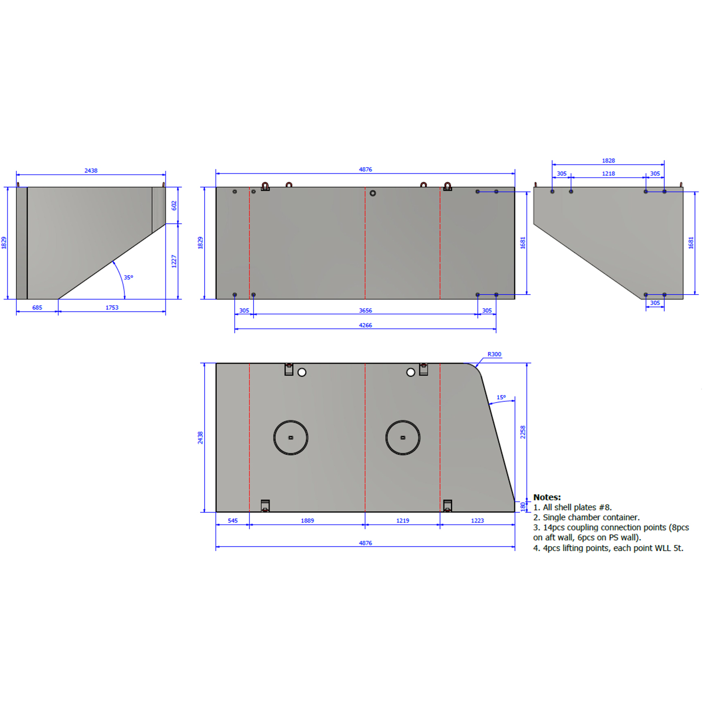 4 stk: 6,1 x 2,44 x 1,83m – 6170KG