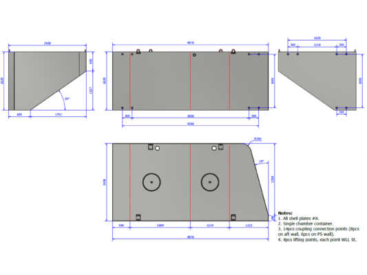 4 stk: 12,19 x 2,44 x 1,83m – 10 920KG